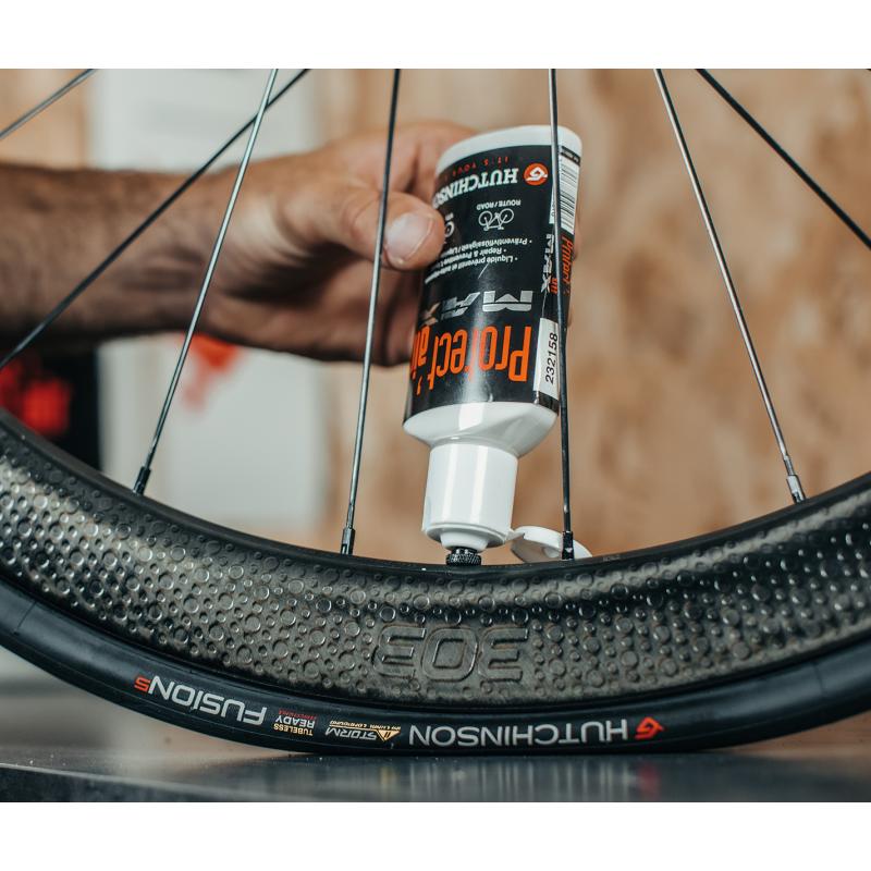 Le liquide préventif HUTCHINSON Protect'Air Max est compatible avec les pneus tubeless et indispensable pour un montage avec des pneus Tubeless Ready.