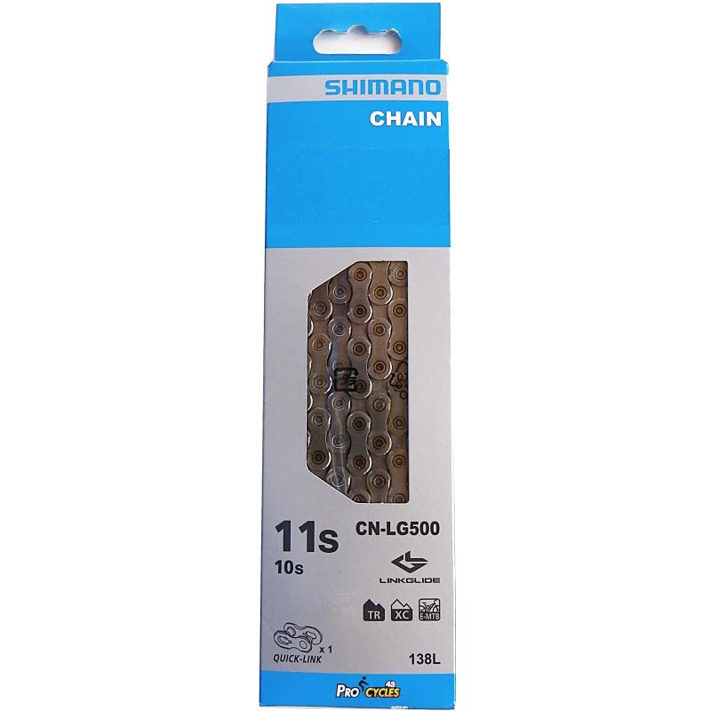 La chaîne Shimano LINKGLIDE LG500 permet un changement de vitesse souple et fiable avec les systèmes LINKGLIDE 10/11 vitesses et HYPERGLIDE 11 vitesses.