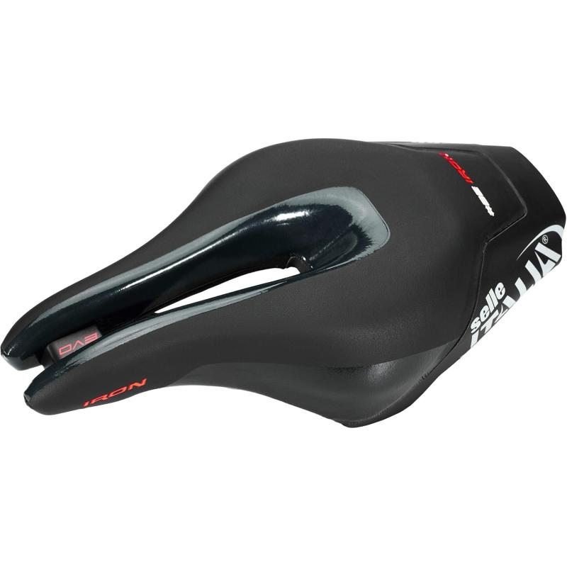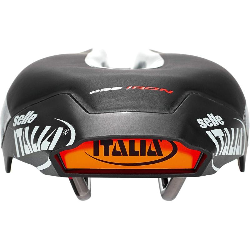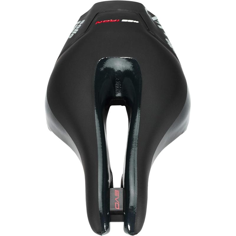 La selle ITALIA Iron Evo Superflow est une selle développée et créée à l'image et à la ressemblance des triathlètes. Le ton mat du logo Selle Italia et les inserts Ironman rouges « aérodynamiques », ainsi que l'insert fluorescent à l'arrière de la selle, garantissent la visibilité et la sécurité.