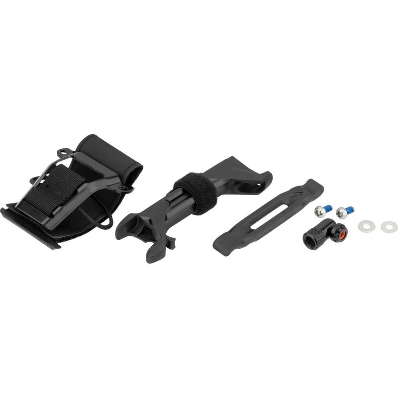 - La tête de la cartouche de CO2 et le démonte-pneu (inclus) s'enclenchent exactement dans l'espace de stockage prévu et y sont solidement fixés