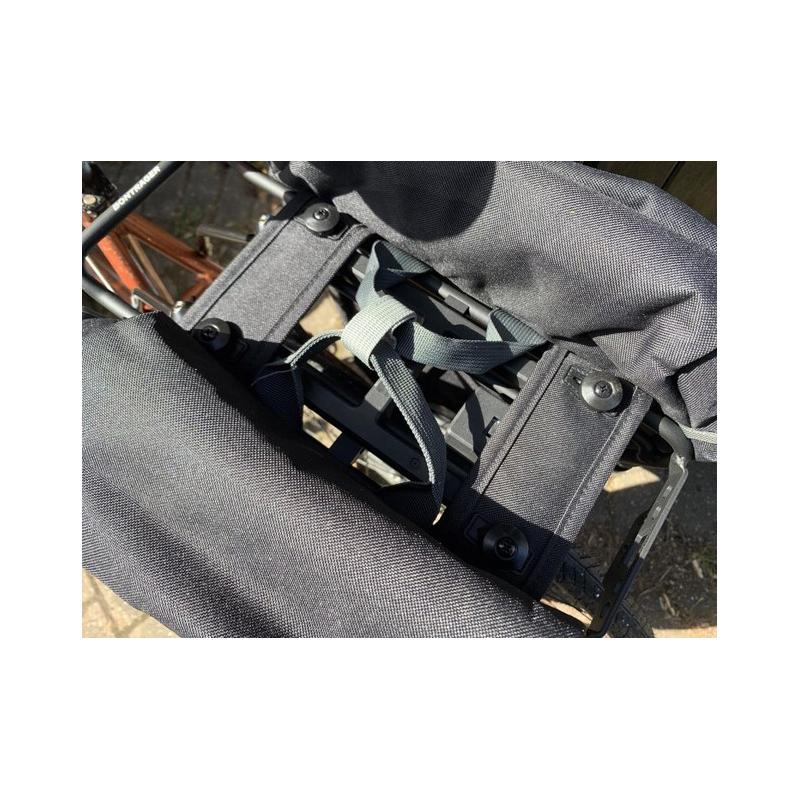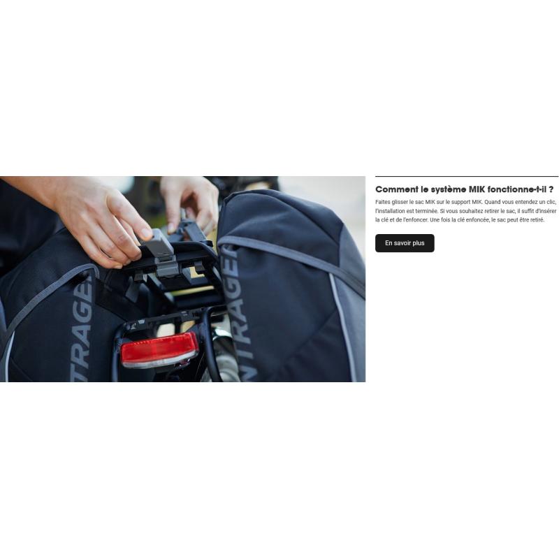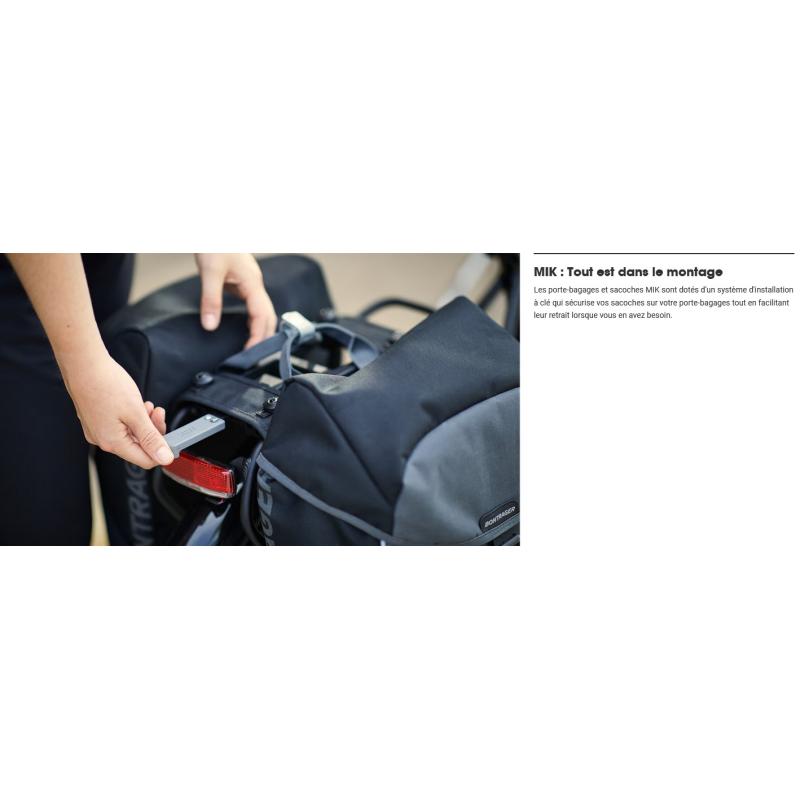 - La poignée robuste est combinée au système MIK pour monter et démonter confortablement cette double sacoche