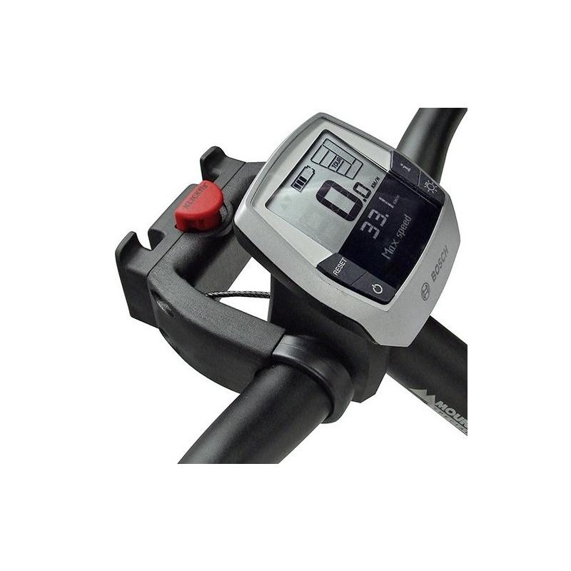 Une version plus large de la fixation pour cintre KLICKfix permettant de d’être montée sans être gêné par le l’affichage du VAE. La fixation est 22mm plus longue que la fixation classique.