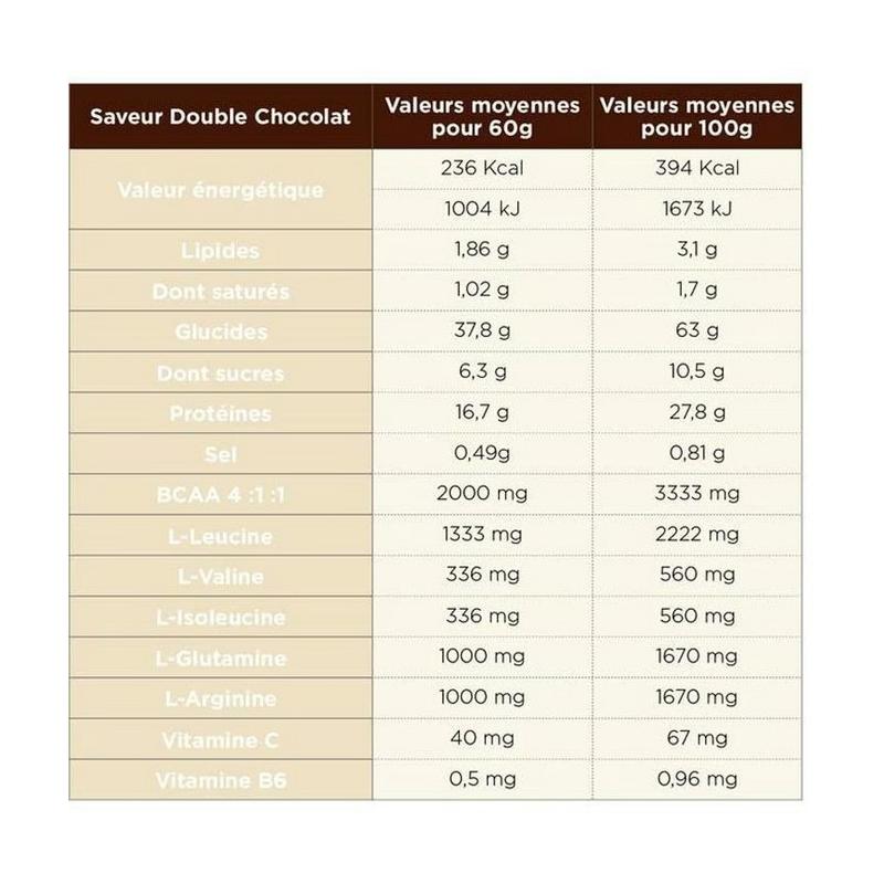 - 16,2g* de protéines : répare et maintient le tissu musculaire