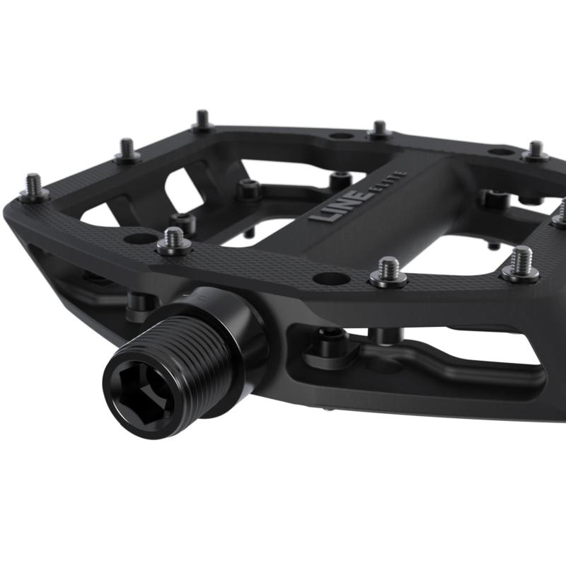 Les pédales plates Trek Line Elite bénéficient d'une large plateforme qui procure un grip ferme et un bon contrôle