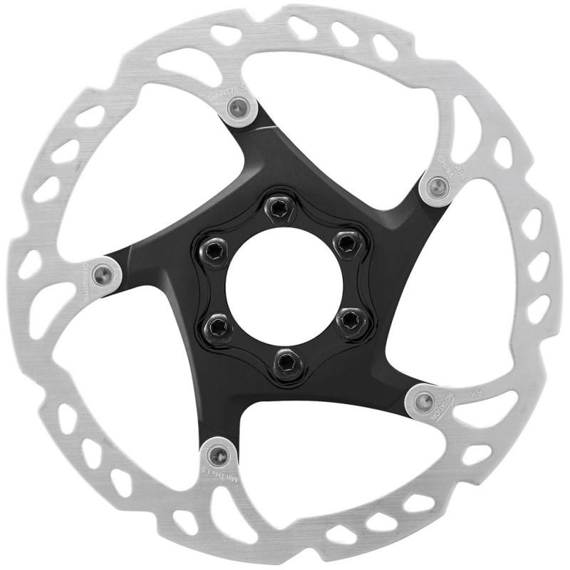 Le disque SHIMANO SM-RT76 est livré avec une fixation à 6 trous, est fabriqué en acier inoxydable et a une conception en deux parties avec une étoile en aluminium.
