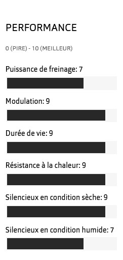 - Formule organique peu bruyante et respectueuse du disque de frein