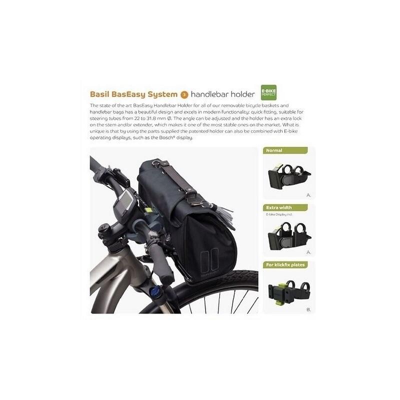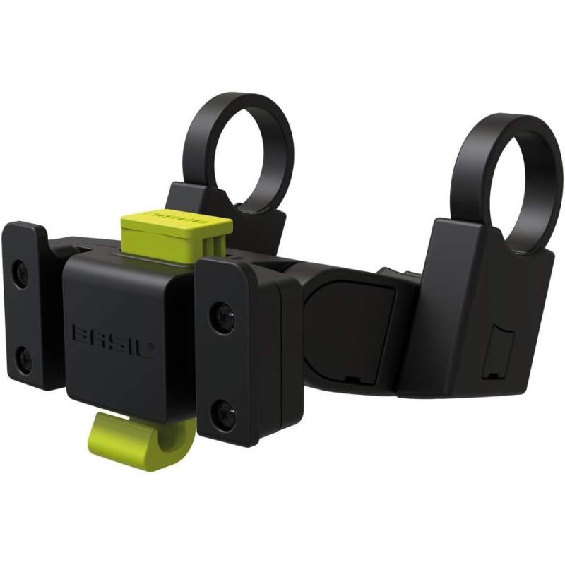Le support de guidon Basil KF est un accessoire pratique pour fixer un panier de vélo amovible ou un sac de guidon. Ce système se fixe facilement sur votre guidon. Le support convient à la plupart des vélos de ville, qu’ils soient pour hommes ou pour femmes.