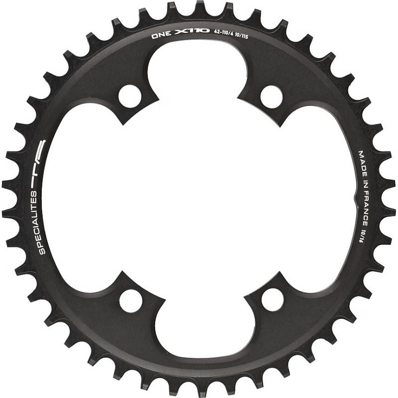 Le plateau Spécialités TA ONE X110 est un plateau avec un profil de dents spécial qui maintient la chaîne en place même sans guide-chaîne. Permet de convertir les systèmes à deux ou trois vitesses en systèmes de 1 x 10/11/12 vitesses en renonçant au dérailleur avant.